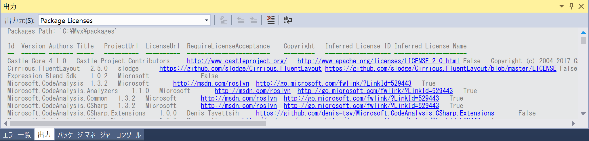 Visual Studio で開発していると使っている NuGet パッケージのライセンスをまとめて確認したいときがあります。