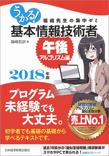 ![うかる! 基本情報技術者 [午後・アルゴリズム編] 2018年版 (福嶋先生の集中ゼミ)](https://images-fe.ssl-images-amazon.com/images/I/51jiKSr0g8L._SX500_.jpg)