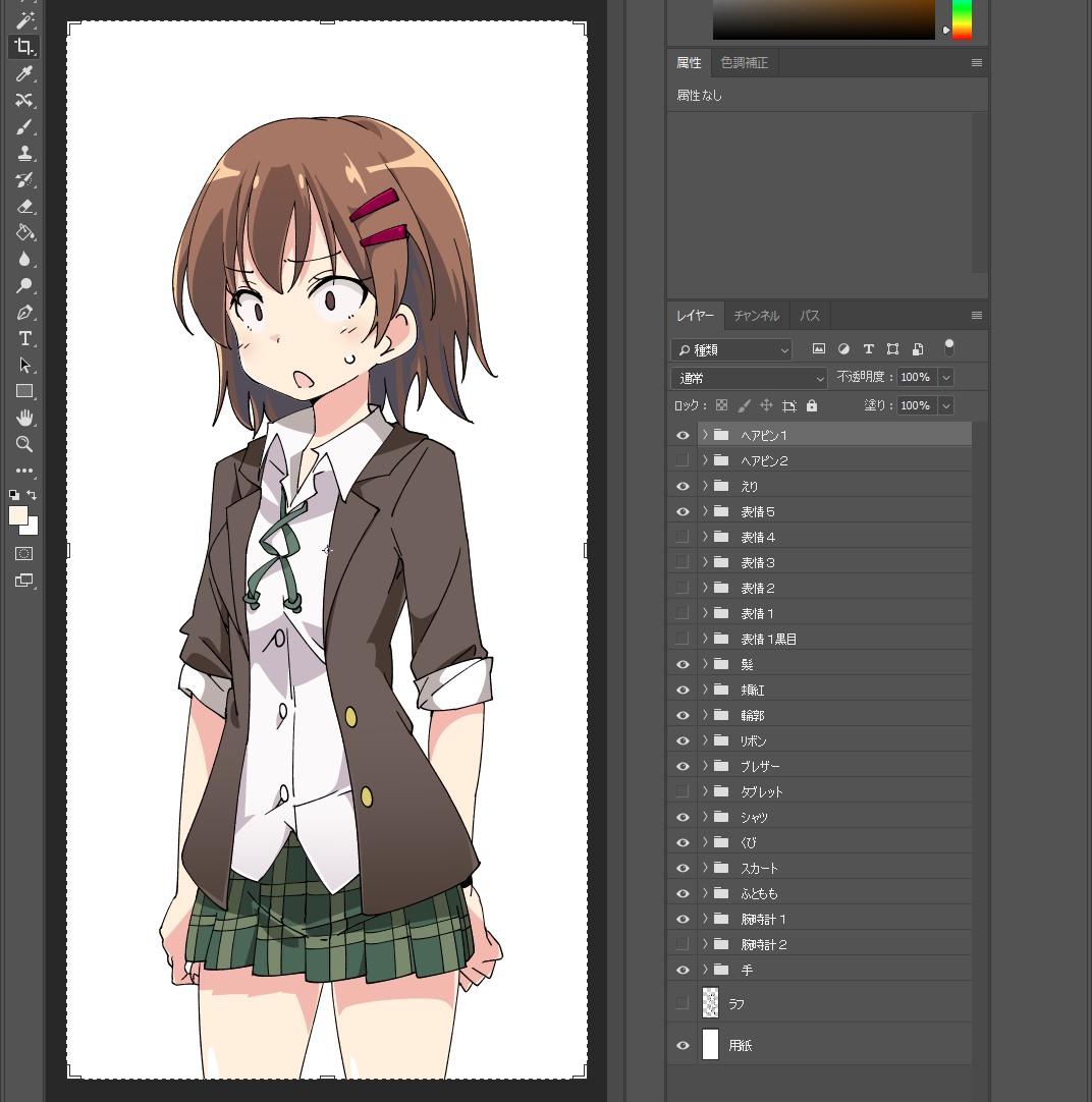 レイヤーが細かく分かれています。ご自身でいろいろ描き足したり着せ替えしたりして使ったりも OK ですよ。