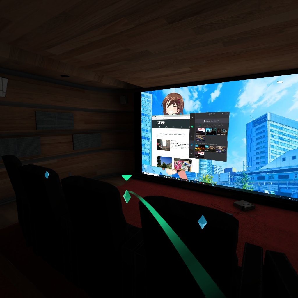 Bigscreen の主目的は、映画やゲームの鑑賞のようですが、そっちの方は、画質や遅延などであまりいい体験ではなさそうな感じです。