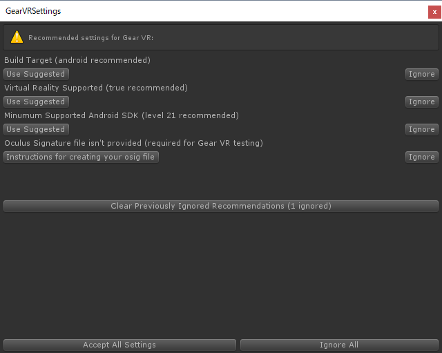 - Player Settings の XR Settings で Virtual Reality Supported に Oculus が追加されていること