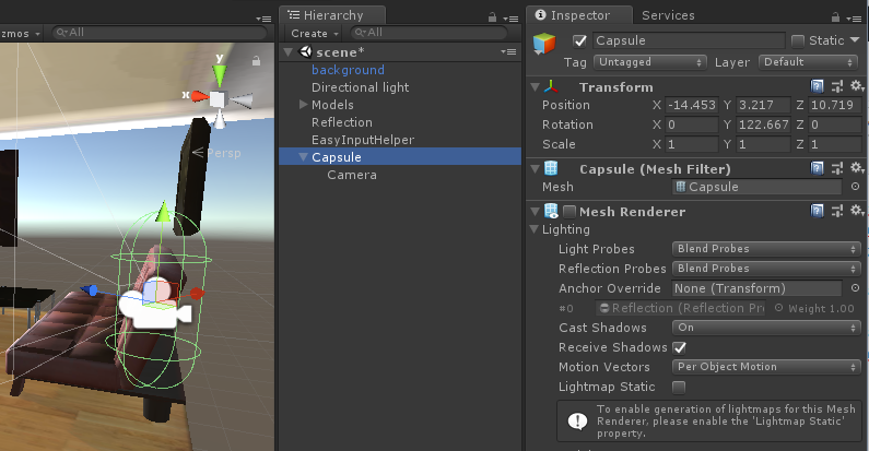 ※ Easy Input for Gear VR and Oculus Go バージョン 1.2、Pack Gesta Furniture #1 バージョン 1.1、Unity バージョン 2018.2.6f1 のときの内容です。