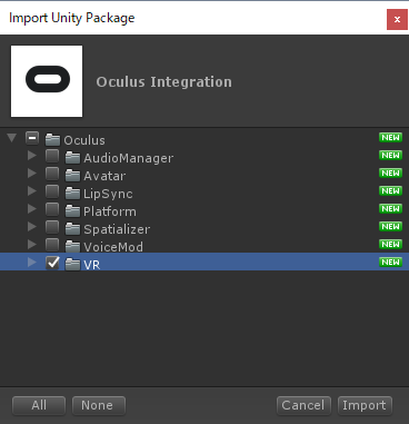 - アセット Oculus Utilities (Oculus Integration) がインポートされていること