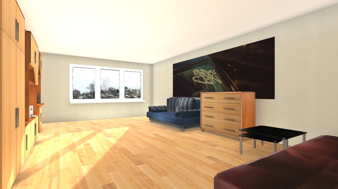 ローポリな家具のアセットだけど、サンプル Scene に家具を配置した部屋が用意されているので、これをそのまま使うよ。