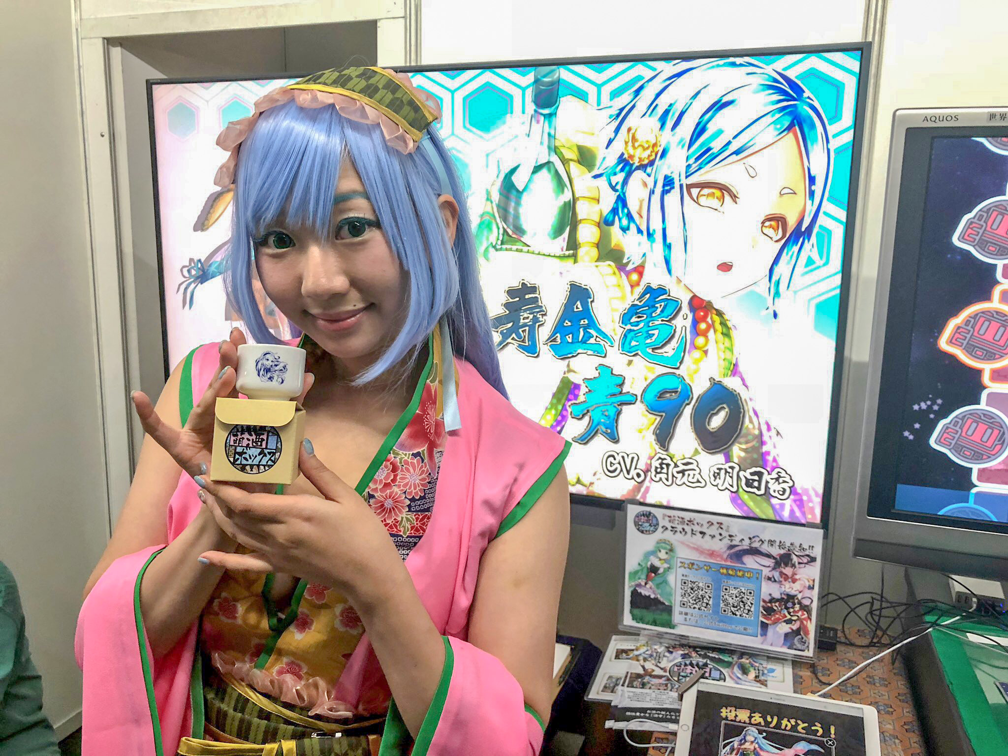- 「等身大で作って展示している」(キャラクターを等身大で表示できる大きさのタッチパネルディスプレイで展示。Windows とのこと)