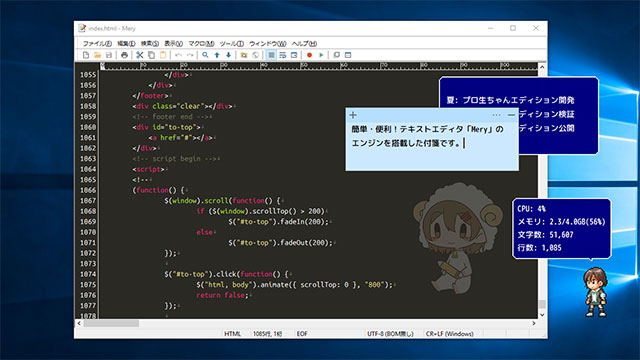 簡単・便利!シンプルなテキストエディタ「Mery」、プロ生ちゃんエディションも登場!