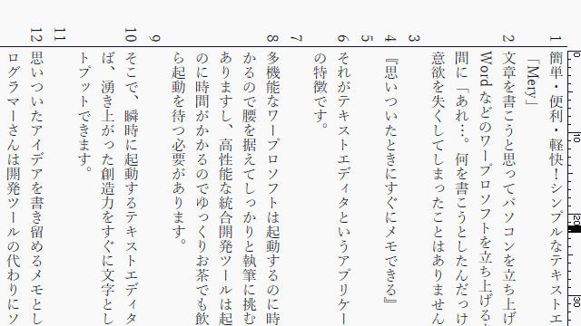 ▼日本語の文章を楽しく編集。縦書きにも対応