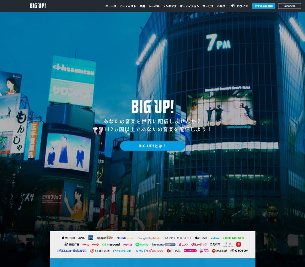 というわけで、音楽配信代行サービスを使います。エイベックス・エンタテインメントが運営する BIG UP! を今回は使いました。