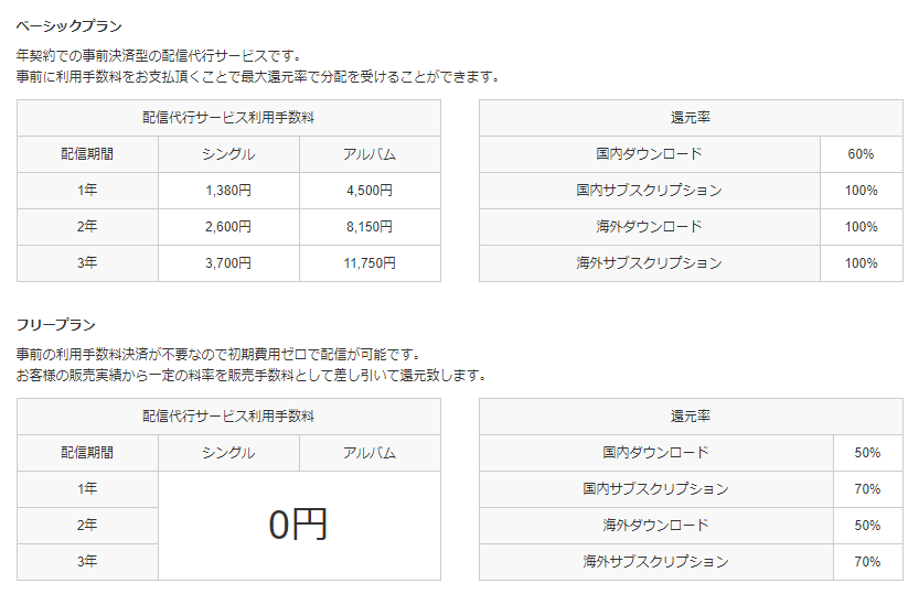 特徴はベーシックプランという年契約だけでなく、無料で使えるフリープランがあります。フリープランは売り上げの還元率が減りますが、低いというわけでもありません。……というかベーシックプランのダウンロード販売還元率60%があまり高くないです。