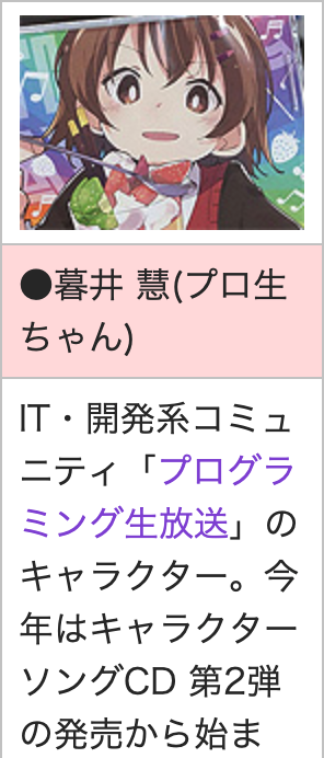 今年も AKIBA PC Hotline! による「アキバで見かけたPC萌えキャラコンテスト」読者投票 を開催中です。「暮井 慧(プロ生ちゃん)」の応援(投票)よろしくお願いします!