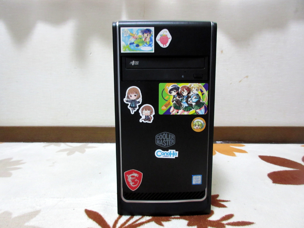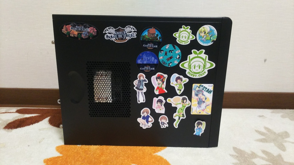 ゆい シールを上手く貼れるようにアクリル板が付いていないケースを選びました。マザーボードのフォームファクタが Micro ATX なので、それに合わせてケースのサイズを選びました。