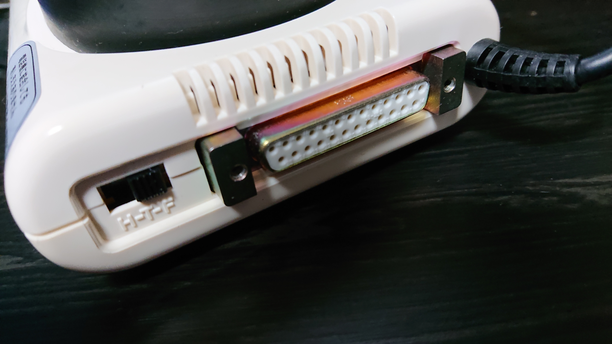 また、この音響カプラは受話器を載せたときに電源が入ります。音響カプラ側を発信側にした場合は、ダイヤル後の呼び出し音や、モデムが発するアンサートーンはノイズと見なされるためか、ダイヤル直後に受話器を載せてしまうとうまく接続できませんでした。