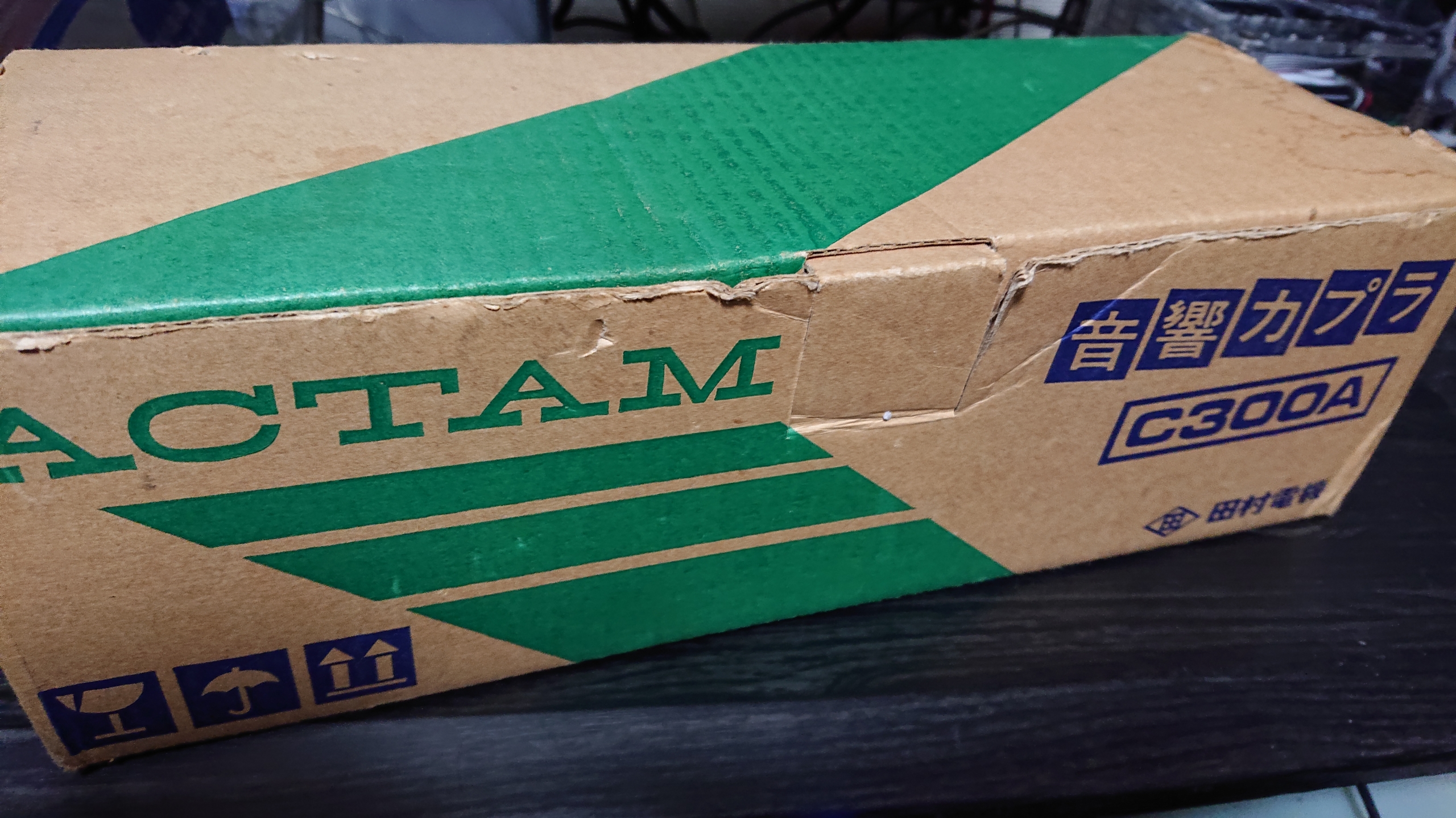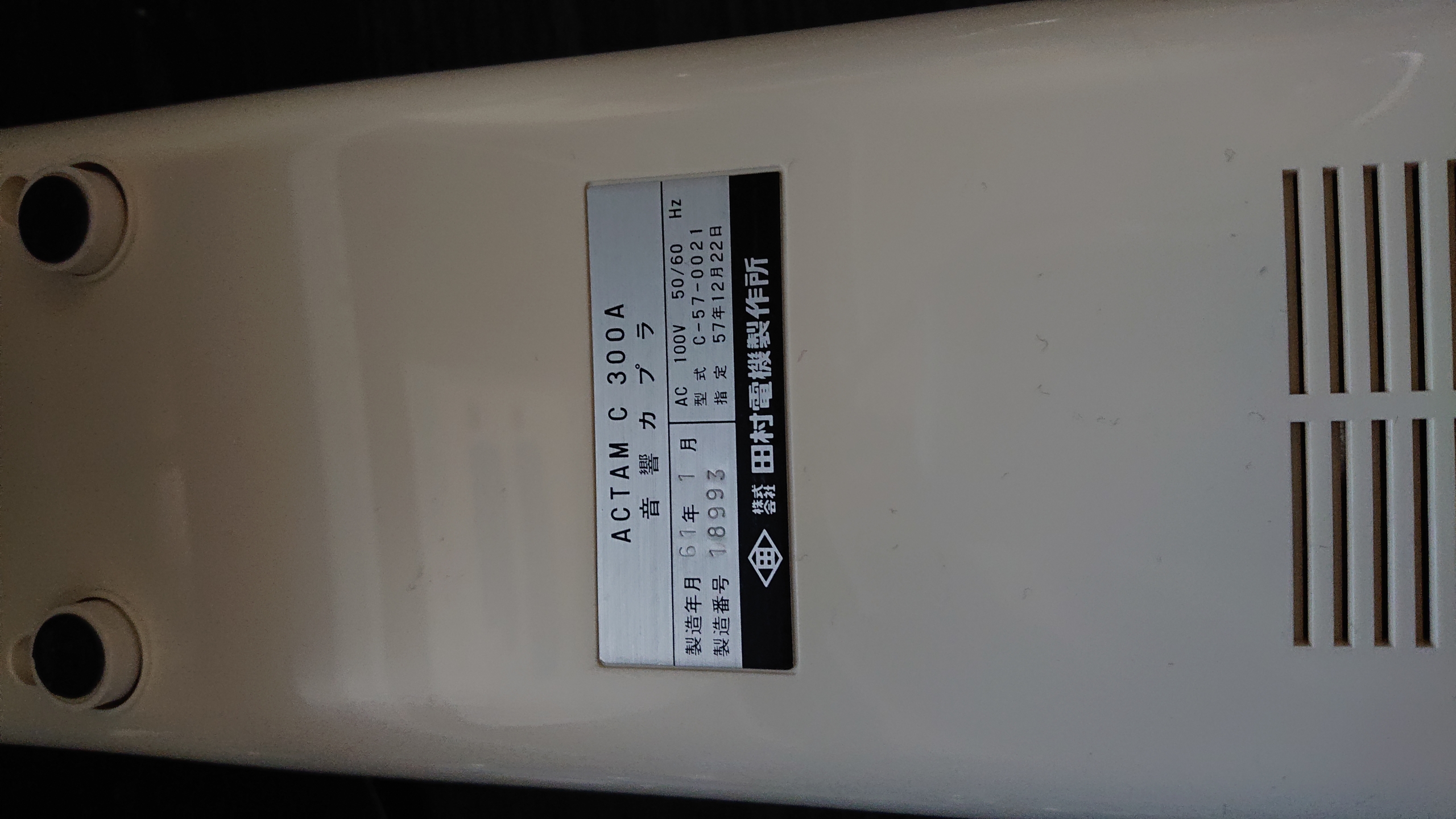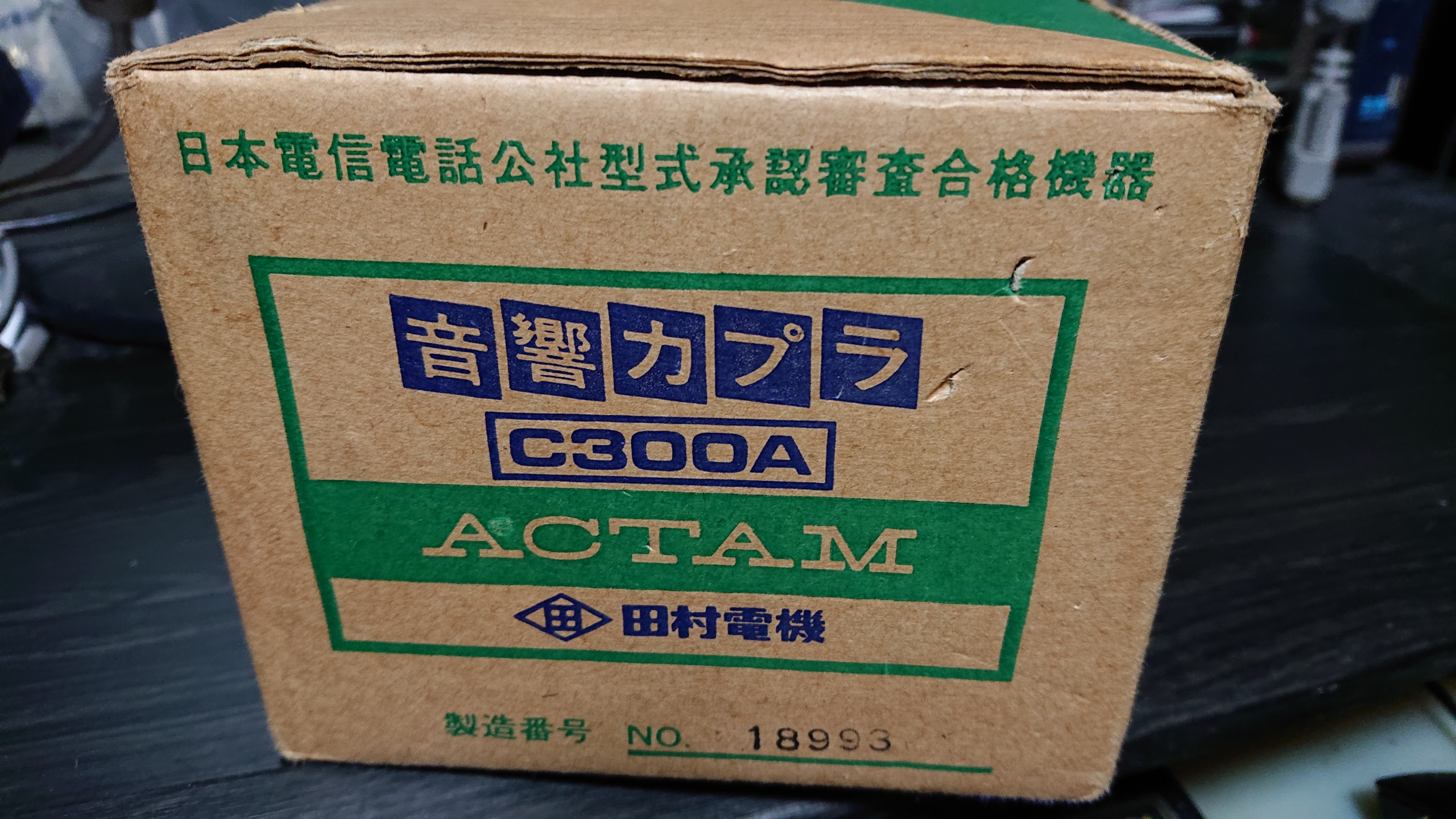 発信側は、音響カプラ ACTAM C300A 株式会社田村電機製作所 1986年製です。1秒あたり 300bit の通信速度でデータ通信が行えます。