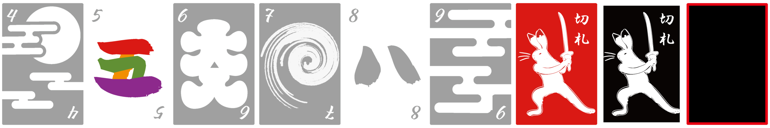 札は、1~12の数字カードが4色ずつある他に、灰色のギミックカードが数種類登場します。ギミックカードは1枚で使ったときのみ、あらゆる効果を発動します(効果についてはゲームプレイ中に確認できます)。ギミックカードを複数枚で出して数字カードとして使うか、単体で出して効果を発動させるか、それを考えるのも切札の醍醐味と言えるでしょう。