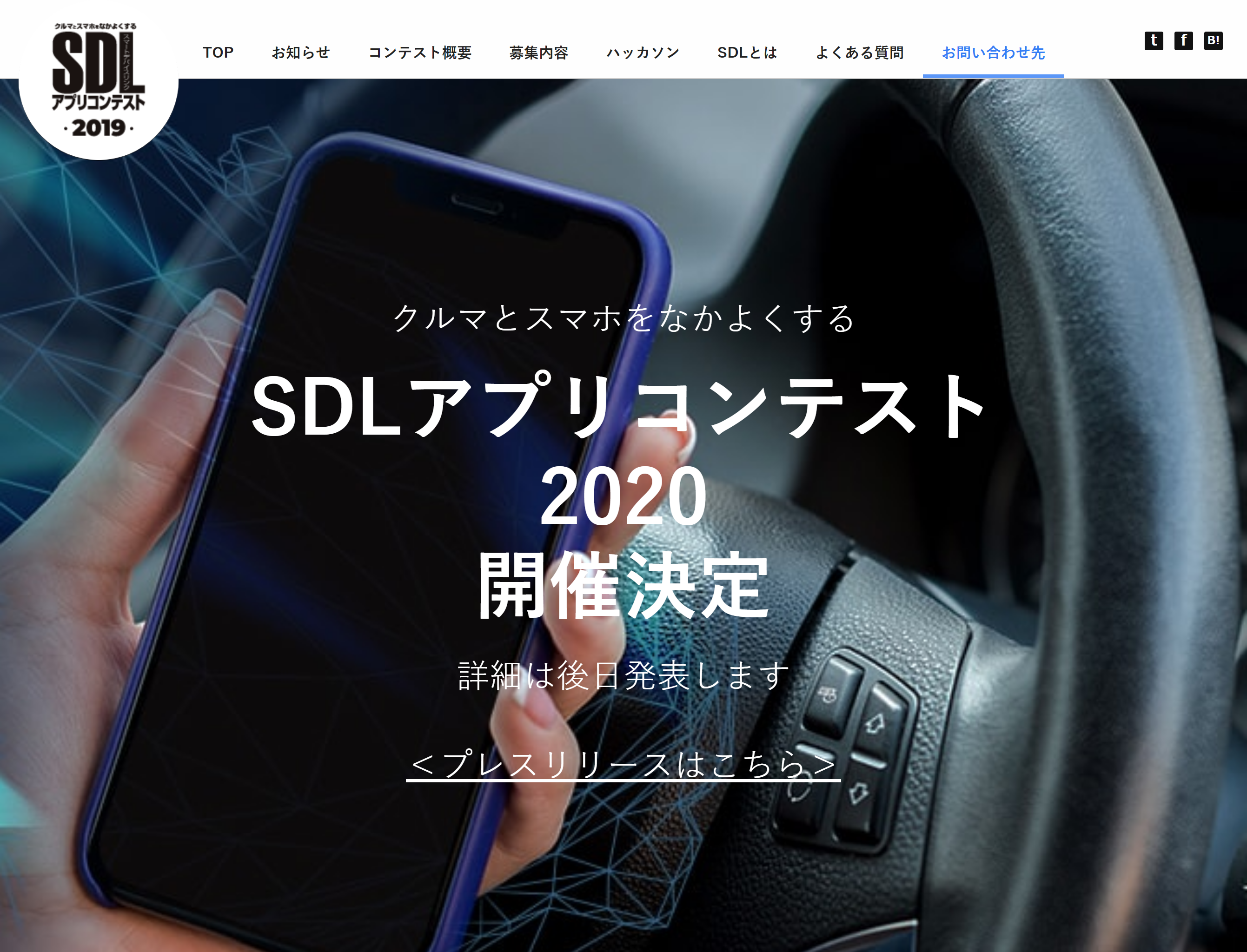 SDL アプリコンテスト実行委員会主催の、クルマとスマホをなかよくする SDLアプリコンテスト 2020 が開催予定です。