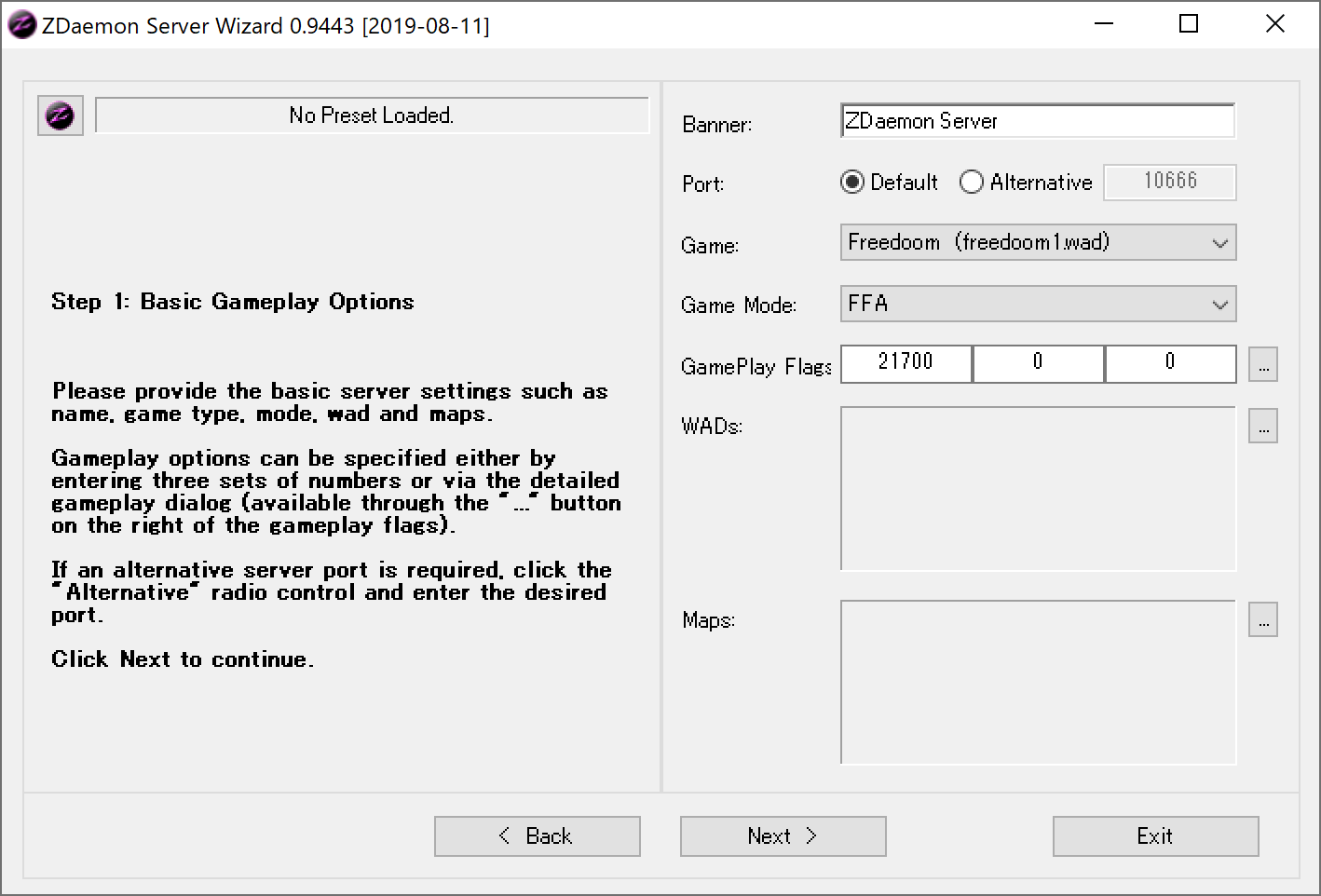 サーバーの立ち上げは、ZDaemon Server Wizard (zswizard.exe) を使います。