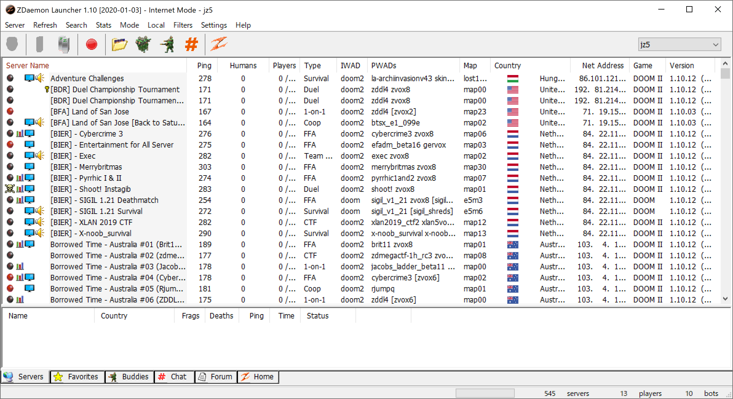 ZDaemon Launcher (zlauncher.exe) を起動し、アカウントを作成(※)すると、いろいろなサーバーに接続できます。
