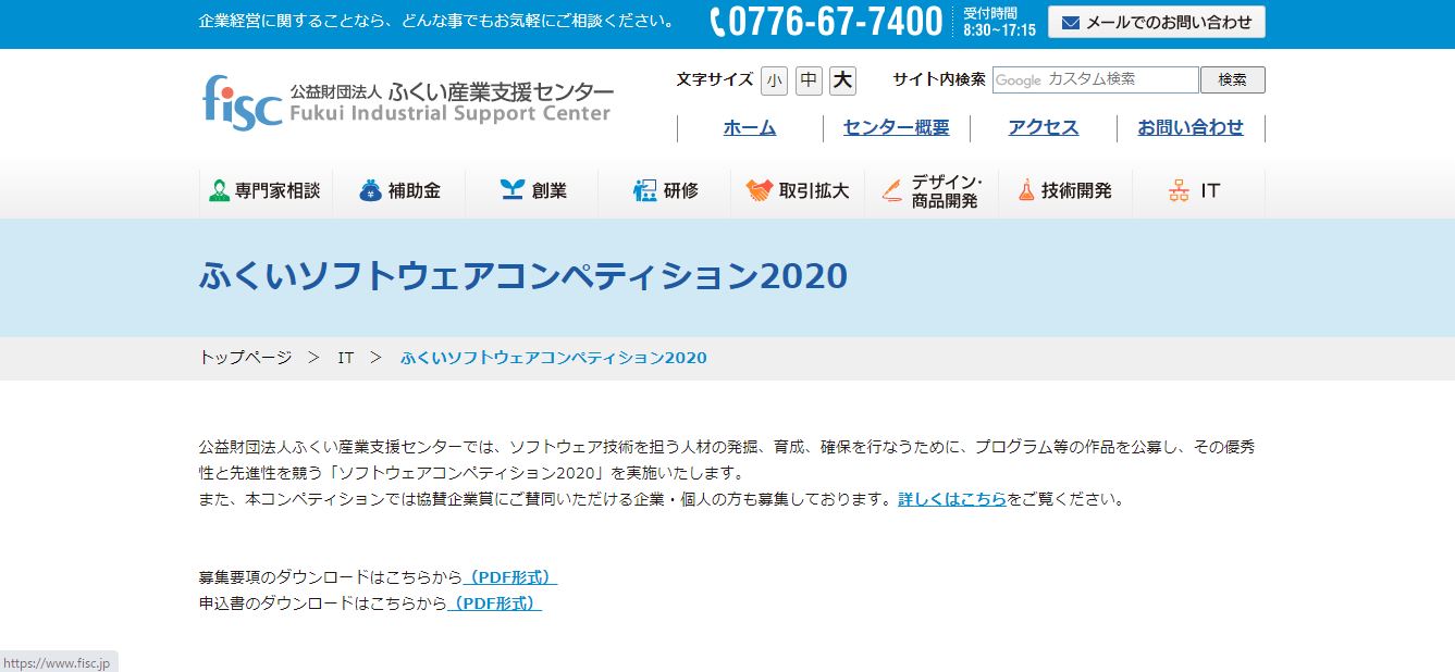 (公財)ふくい産業支援センター主催の、ふくいソフトウェアコンペティション2020 が開催中です。