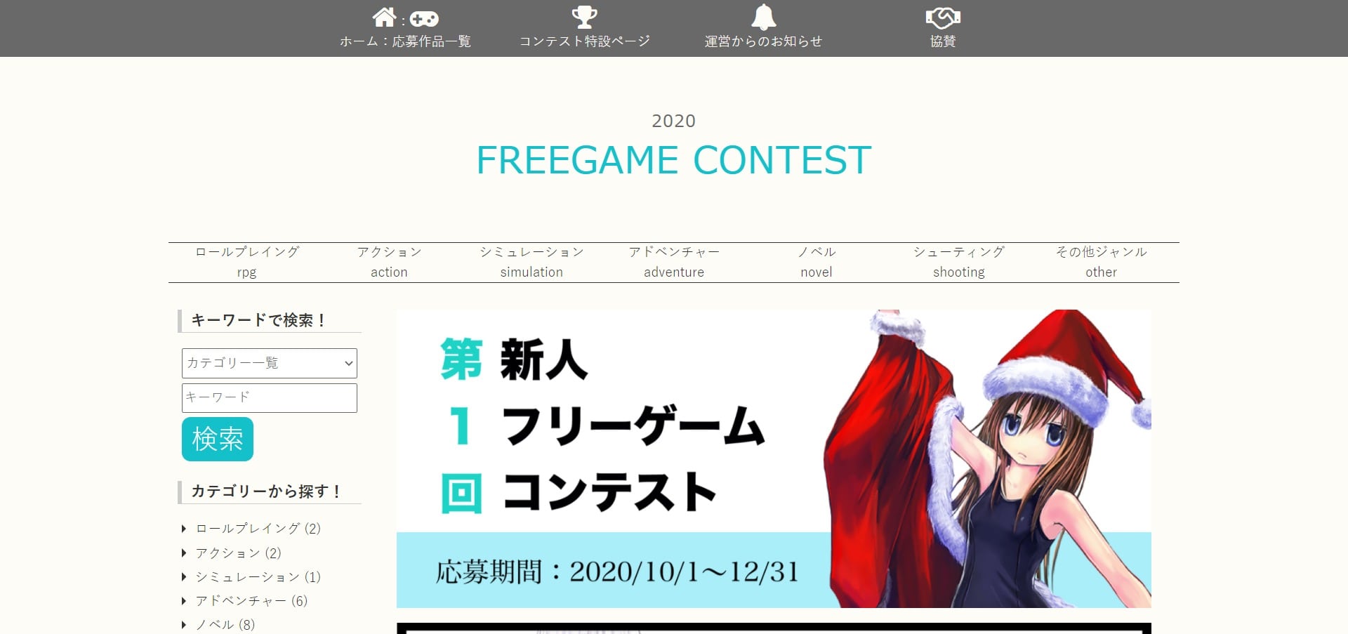 第1回新人フリーゲームコンテストが開催中(12/31〆切)