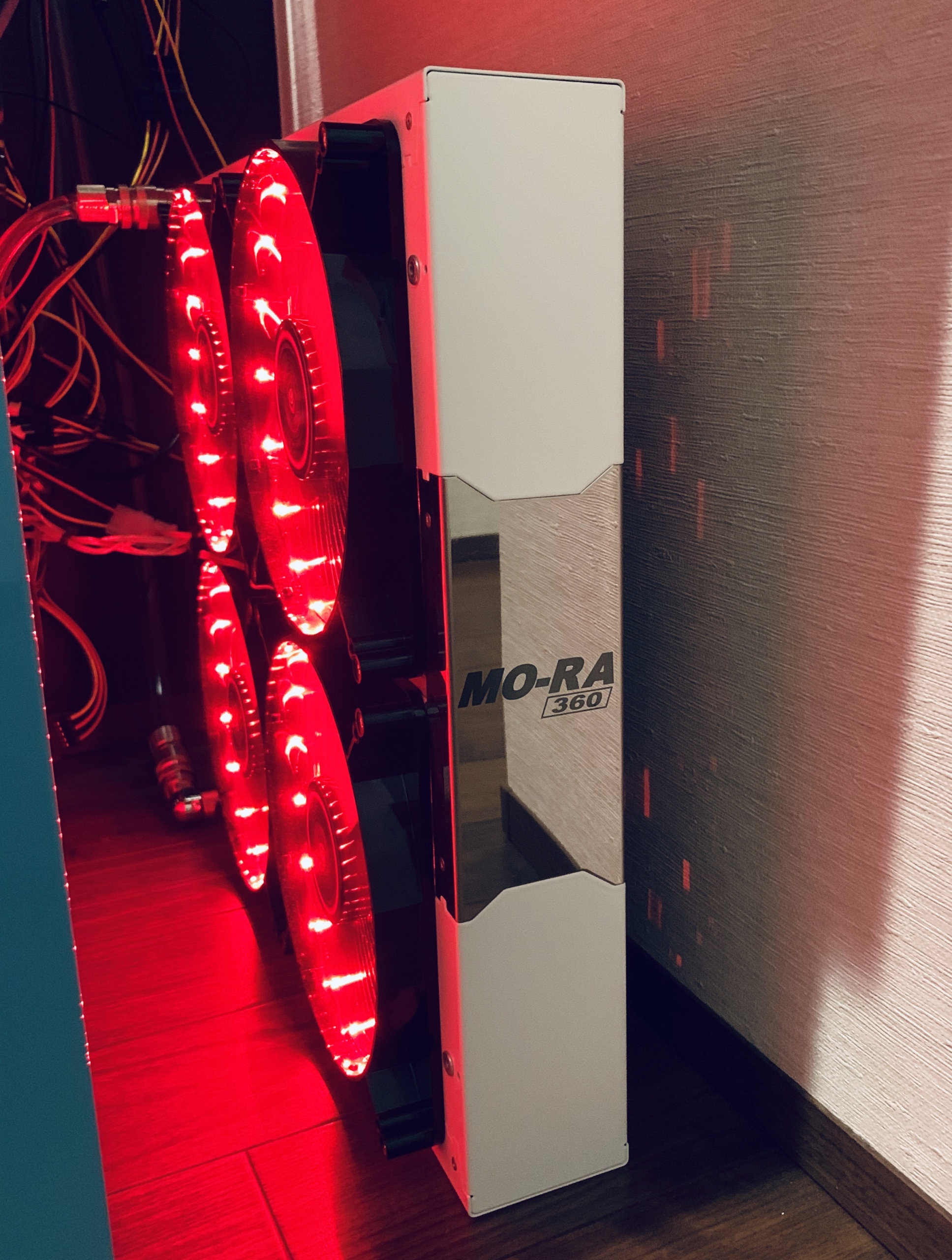 C* PUラジエター(2個直列接続): Alphacool NexXxoS Monsta 360mm radiator, Alphacool NexXxoS UT60 Full Copper 360mm radiator – White Special Edition - CPUラジエターファン: noctua NF-A12x25 PWMx3, noctua NF-P12 redux-1300 PWMx3