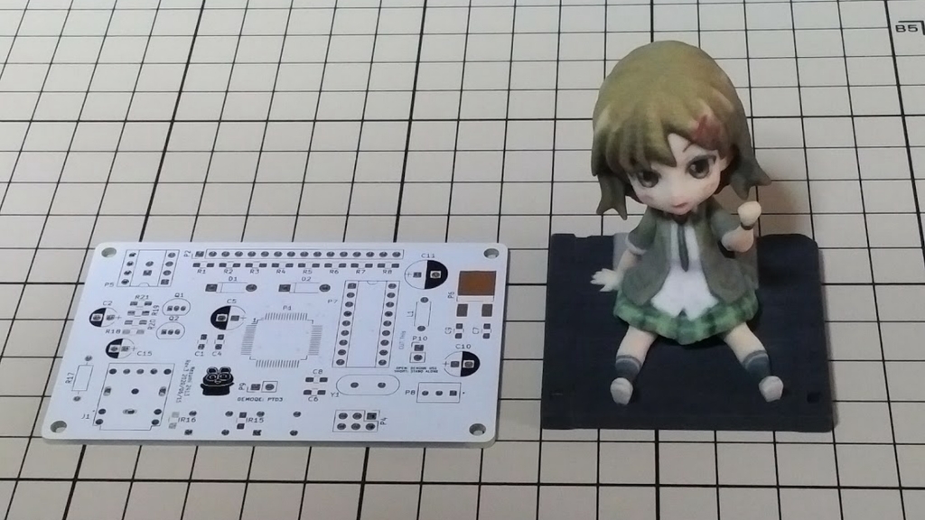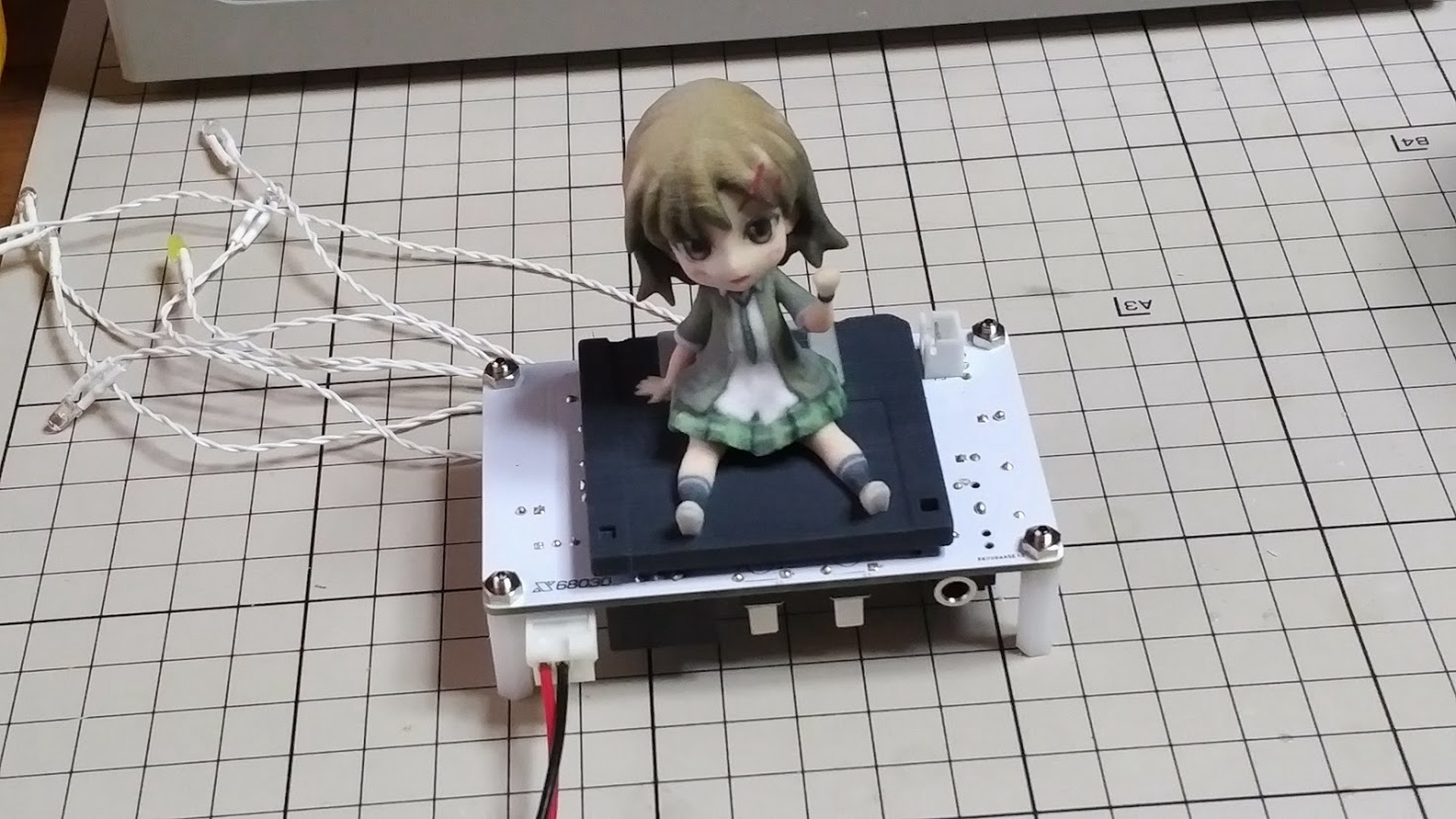 そのままプロ生ちゃんフィギュアを乗せてしまうと、半田フィレットで大事なフィギュアに傷がついてしまうので、このようにゴム足で高さを稼ぎます。