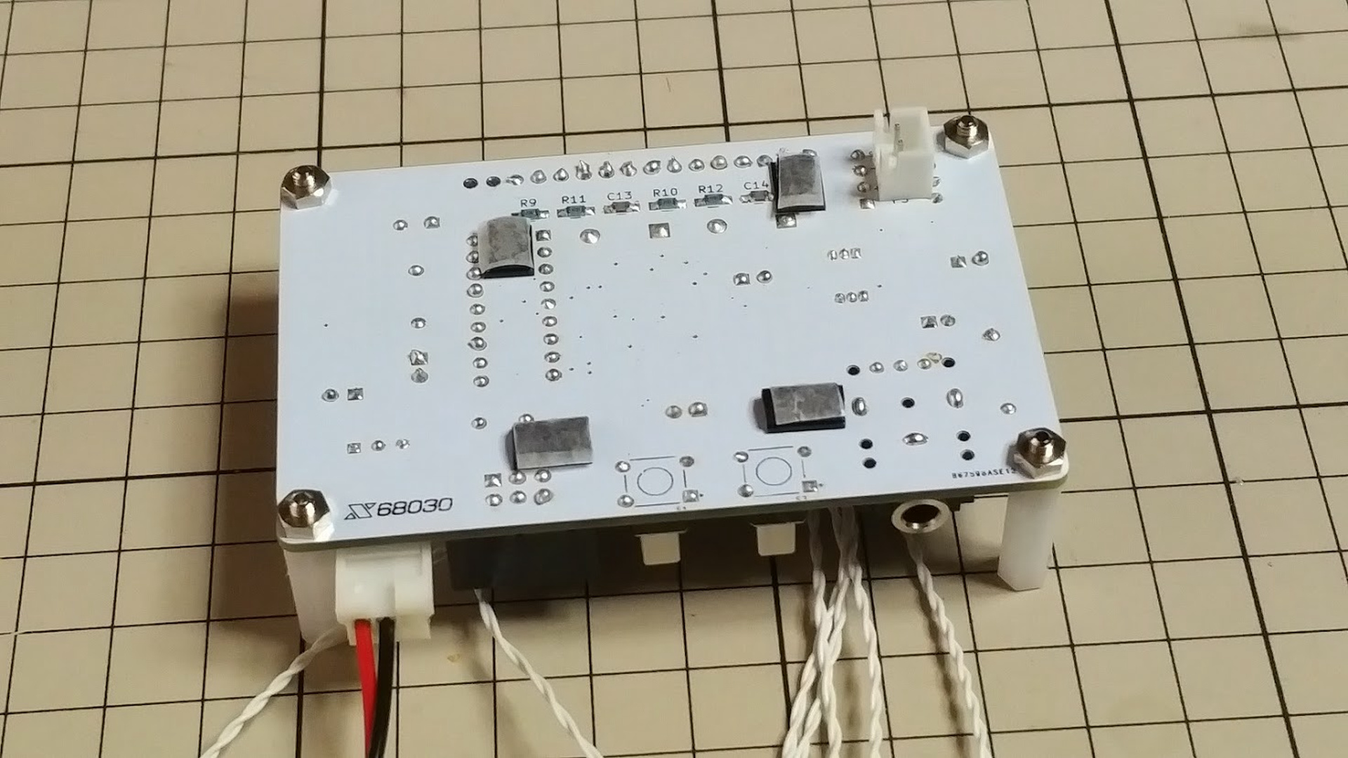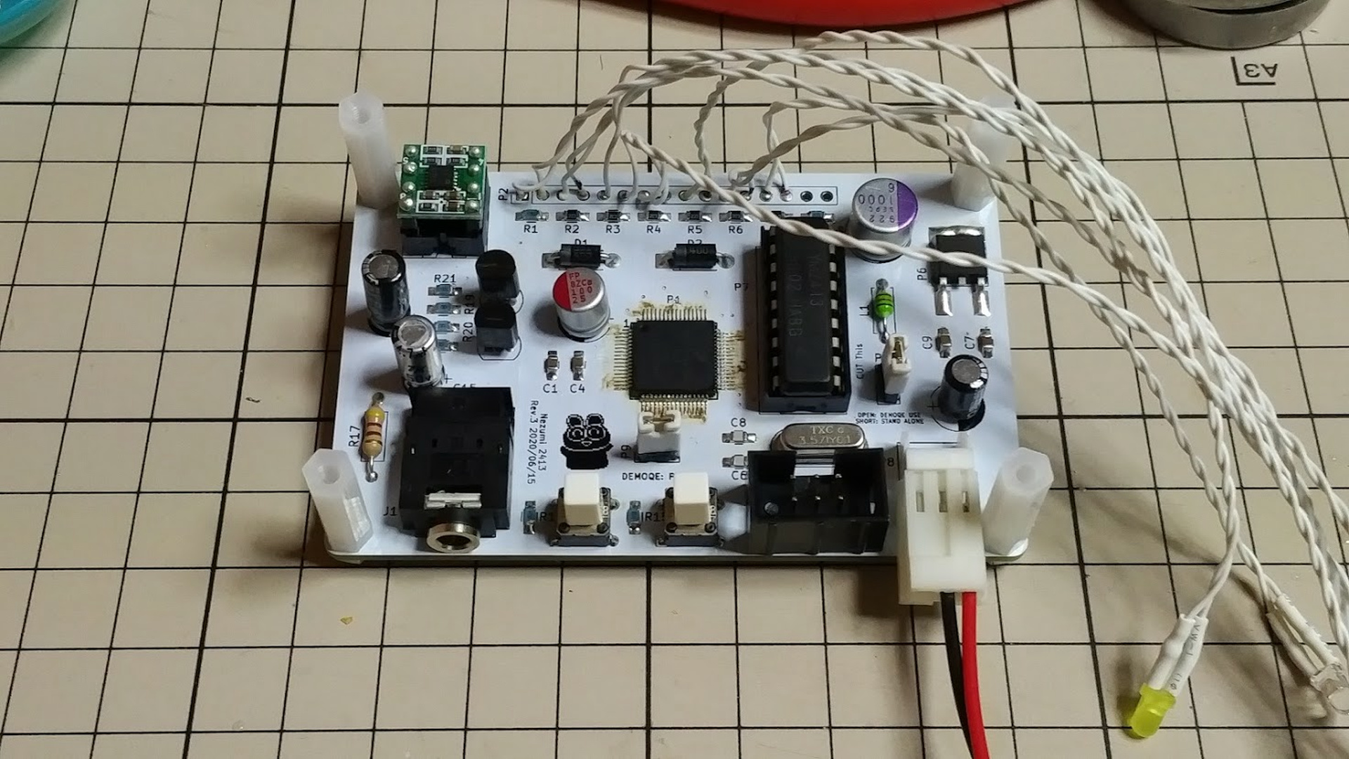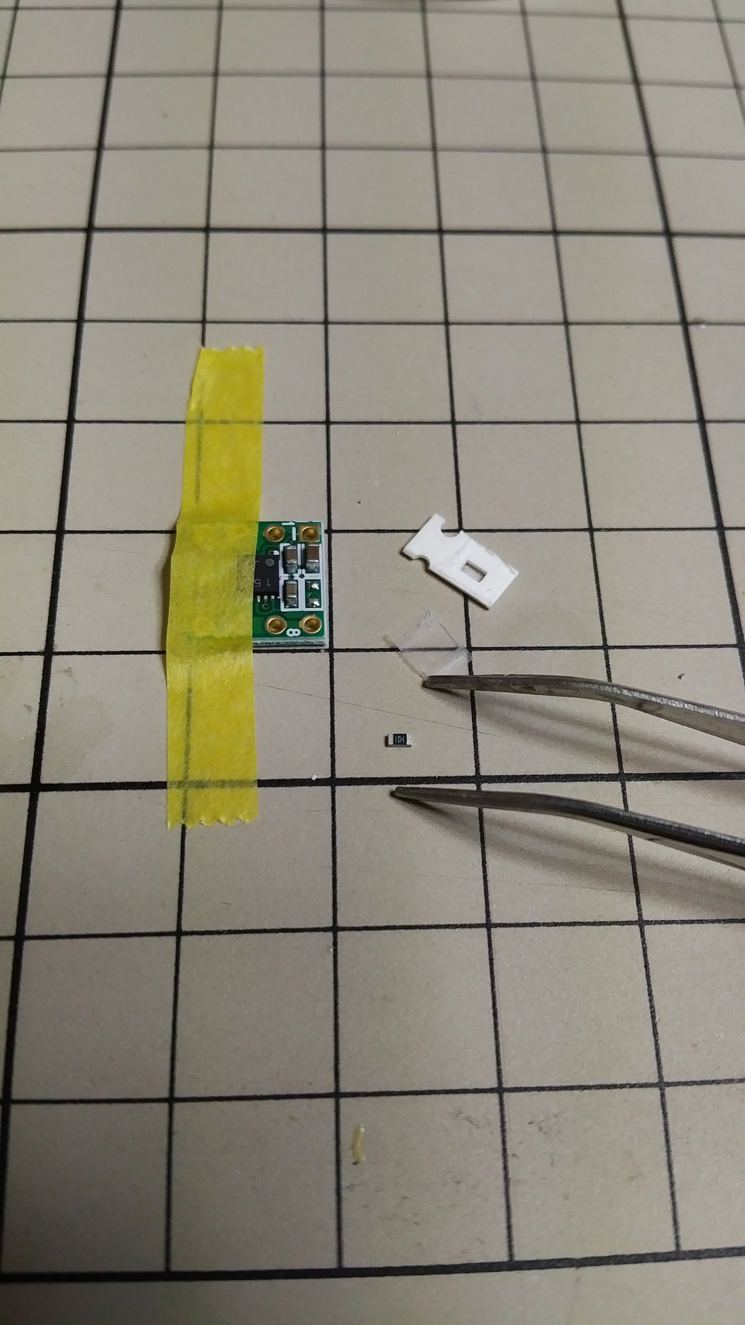 音声のアンプユニットの利得を変更するために、チップコンデンサを交換します。なお、シートの升目のサイズは 1cm×1cmです。