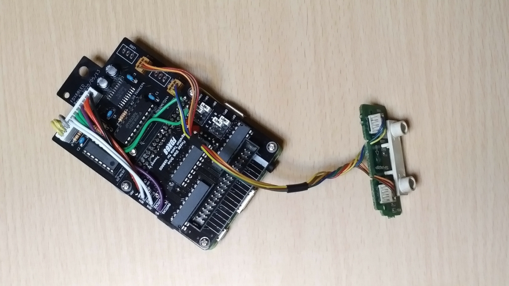 その他、抜き取られていた FD ドライブの変わりに、GIMONS さん(Twitter: @kugimoto0715)が製作された FD ドライブエミュレータ「FDX68(Raspberry Pi3 シールド)」を使用しますが、本来これは「本体外付け」を想定した機器であるため、これを X68030 本体に内蔵させるにあたり、本体の FD アクセス LED を FDX68 からシミュレート制御、および、FDX68 本体のマウンタ(固定具)となる拡張基板(NXP HCS08マイコンで制御)を独自で設計し、FDX68 専用の制御ソフトウェアの改変も独自に行っています。