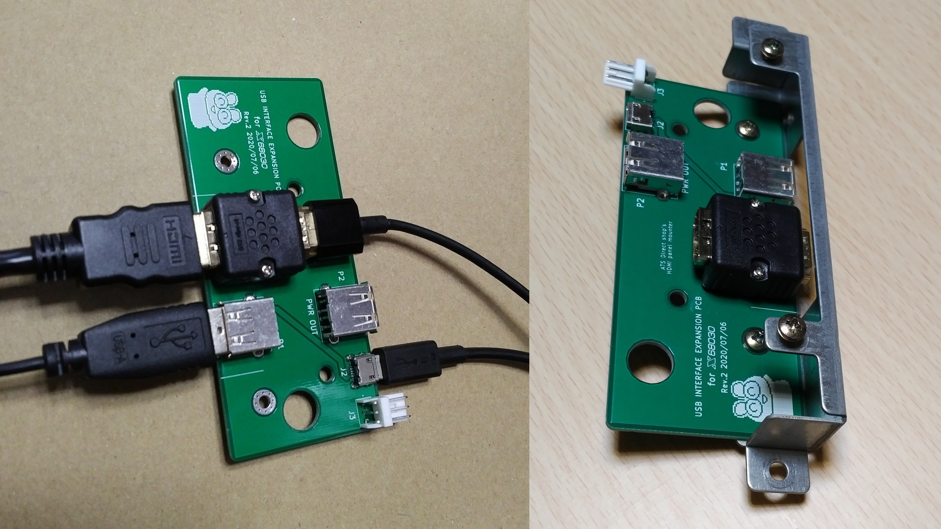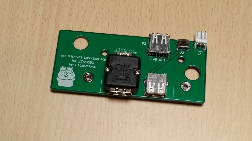 また、FDX68 は Raspberry Pi3 でもあるため、それ自体を制御(設定)するために、HDMI ポートおよび USB ポートの使用が不可欠となってくるため、これらポートを安全に本体の外に引き出すために、すでに不要となった元々の純正端子である「外付け FD ドライブ増設端子(EXPANSION FDD 端子)」を撤去し、そこに Raspberry Pi3 の HDMI および、USB 端子を外部に出すための独自設計基板(端子固定用基板)を増設し、X68030 と Raspberry Pi3 が同時に起動する(運用できる)ハードウェアとなりました。