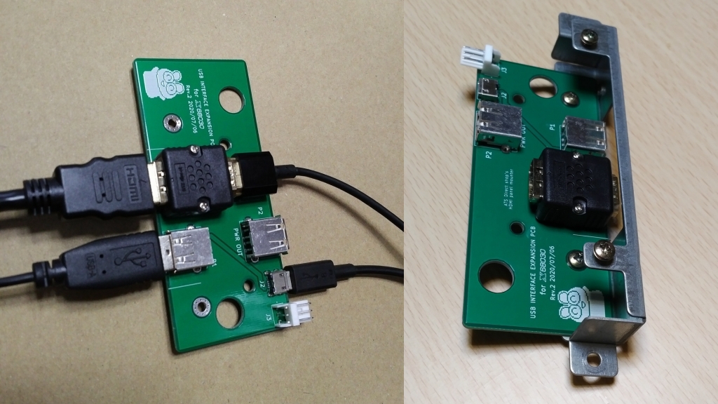 拡張端子基板概観。電源供給端子とメス-メス変換になります。