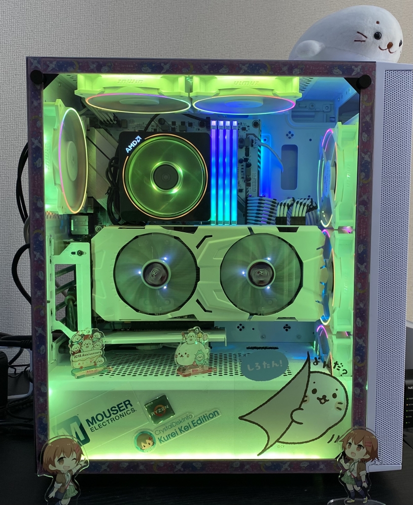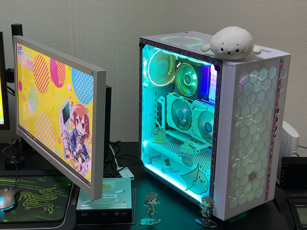 しろラボ 可愛いだけでなく、APEX、PUBG 等の FPS 系のゲームも遊べるゲーミング PC に仕上がっています。後、プロ生ちゃんのコンテストなので、プロ生ちゃん アクリルスタンド 左向き指差し・右向き指差しウインクを使用して作品アピールさせていただきました。