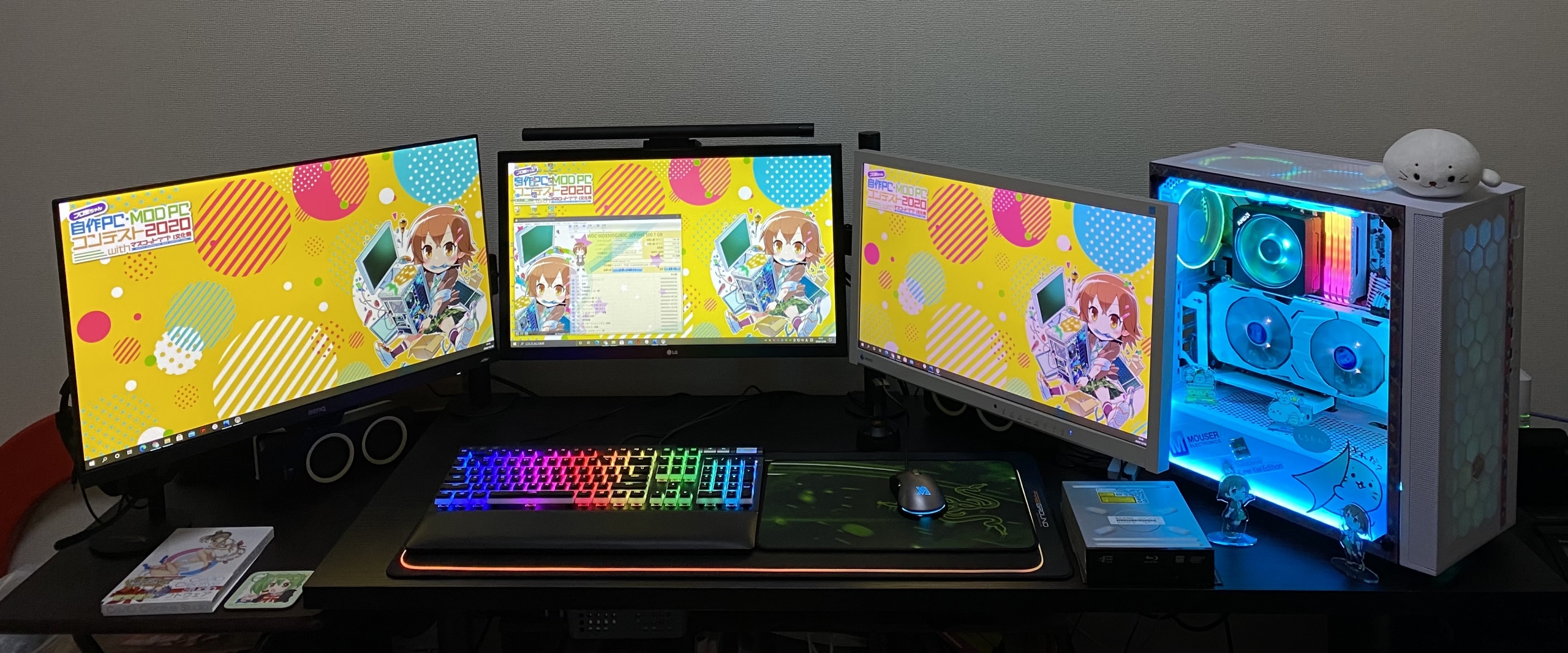 しろラボ 可愛いだけでなく、APEX、PUBG 等の FPS 系のゲームも遊べるゲーミング PC に仕上がっています。後、プロ生ちゃんのコンテストなので、プロ生ちゃん アクリルスタンド 左向き指差し・右向き指差しウインクを使用して作品アピールさせていただきました。
