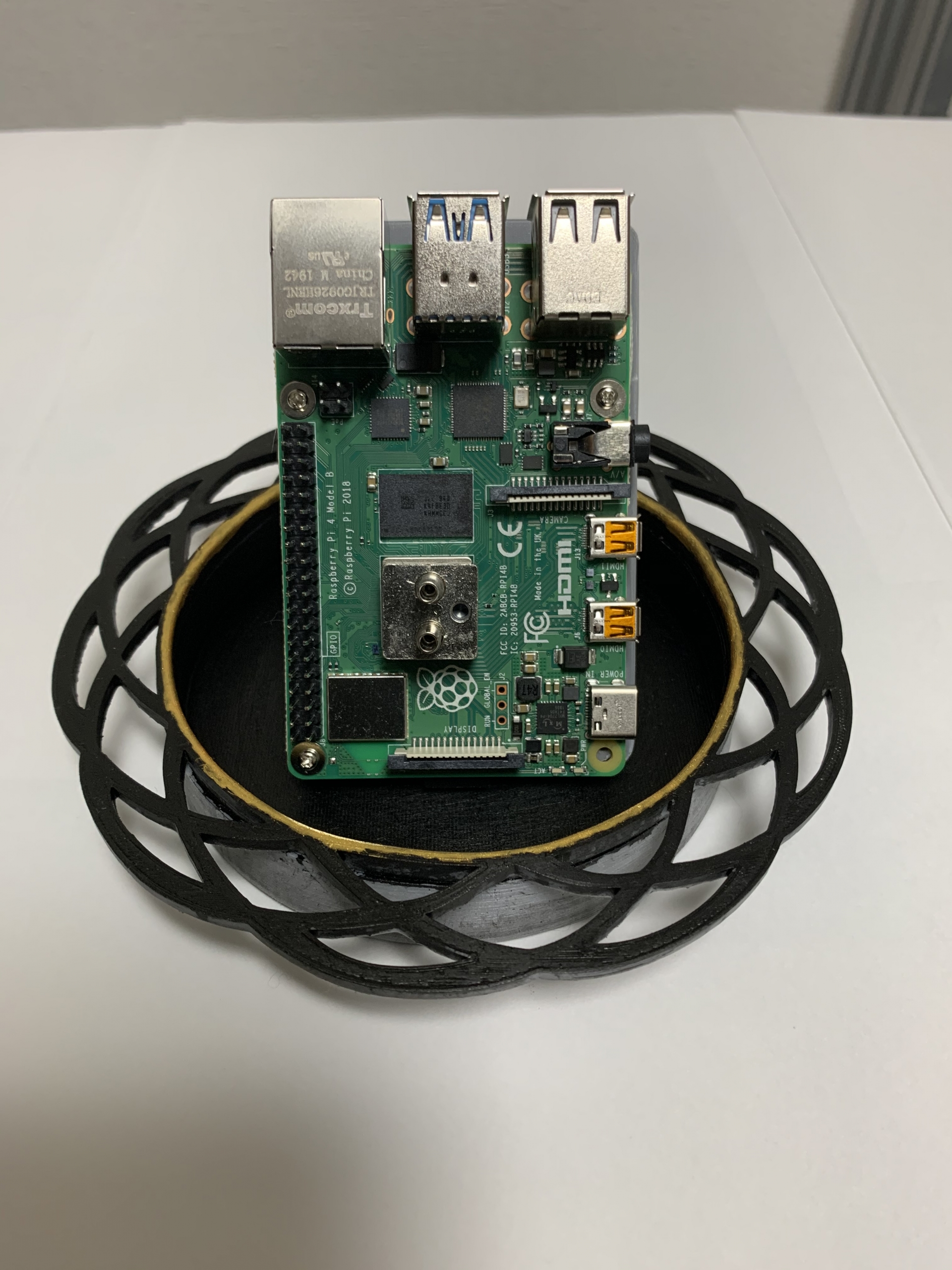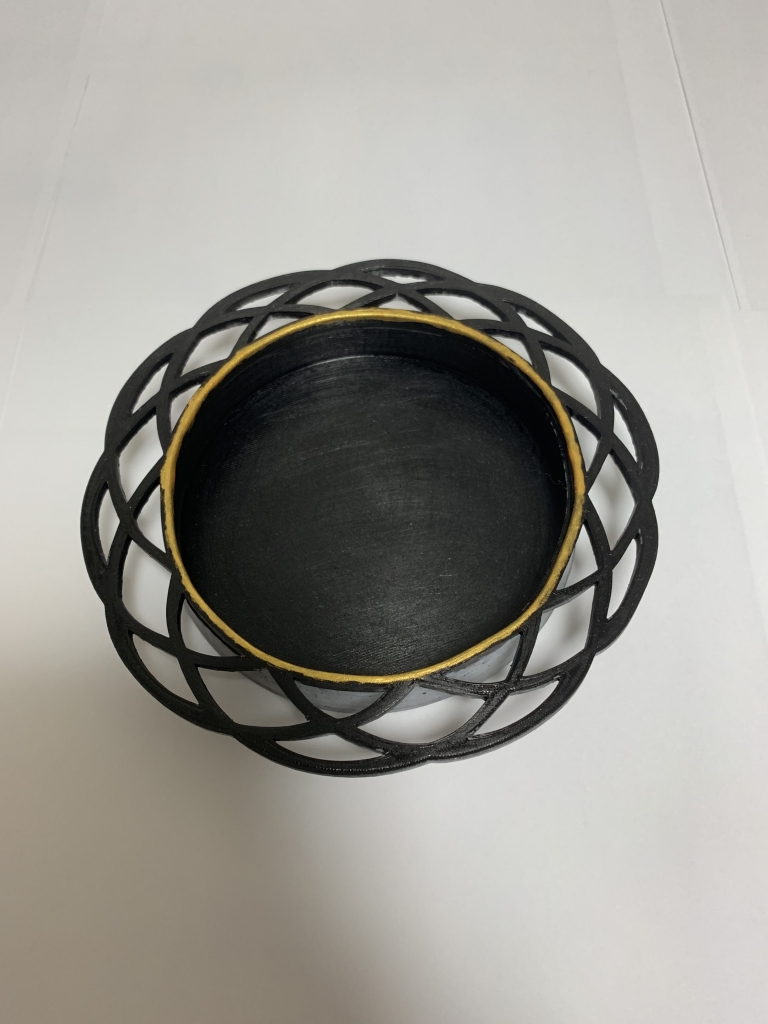 ゼリラモニム ツキエスさんの春霞という引手に惹かれまして、ラズパイ4が入るように巨大化させてベースにしようと思いました。Fusion360 という 3D CAD ソフトを用いて、カタログの画像からトレースして、3D データを作り、3D プリンタで出力し塗装しました。