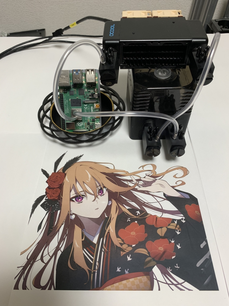 ラズパイ PC は水冷で、全て USB 給電で動きます。 通水テストで原因不明の漏れがあったため、撮影時は稼働させてません m(_ _)m
