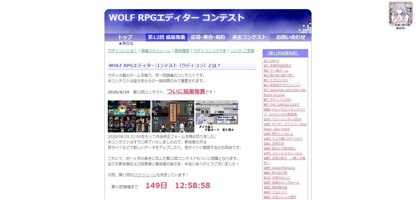 ※ 詳細は、第13回WOLF RPGエディターコンテスト を確認してください。