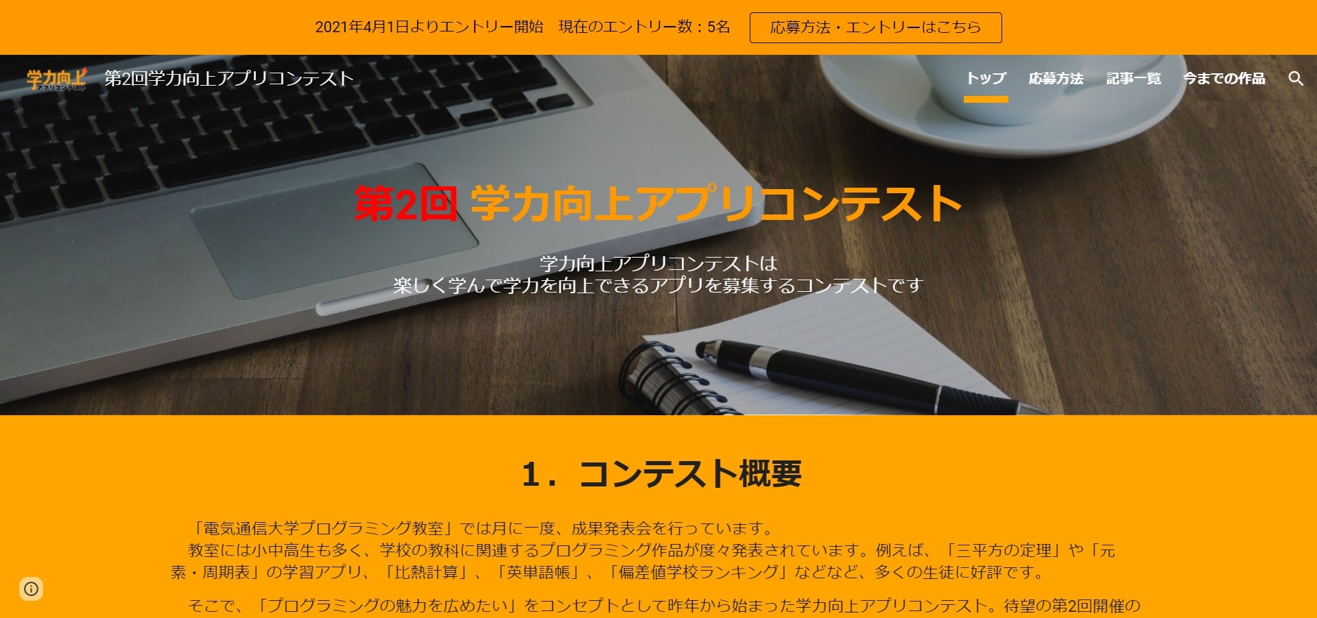 NPO法人uecサポート主催の、第2回 学力向上アプリコンテスト が開催中です。
