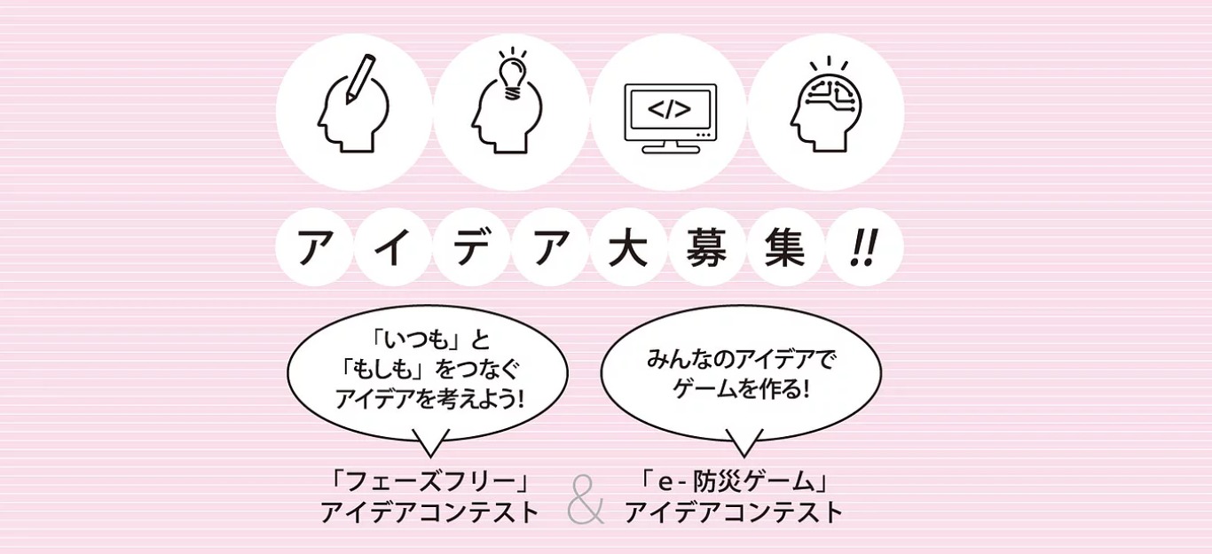 フェーズフリーなアイデア・製品、または防災ゲーム作品・アイデアを募集。