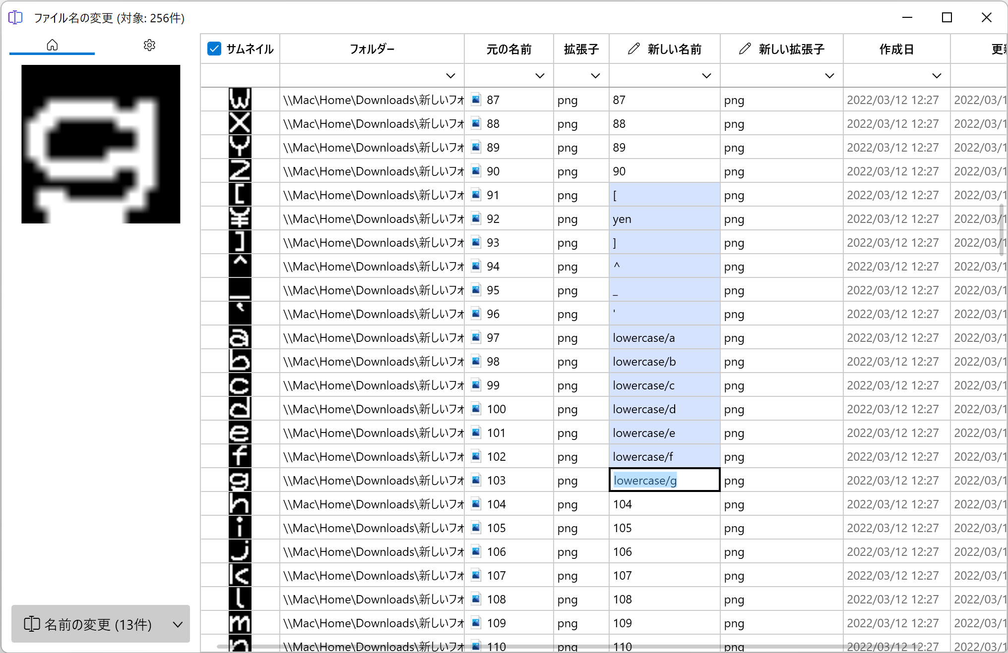 - 新しいファイル名に「/」または「\」を使って、フォルダーの振り分けも可能。