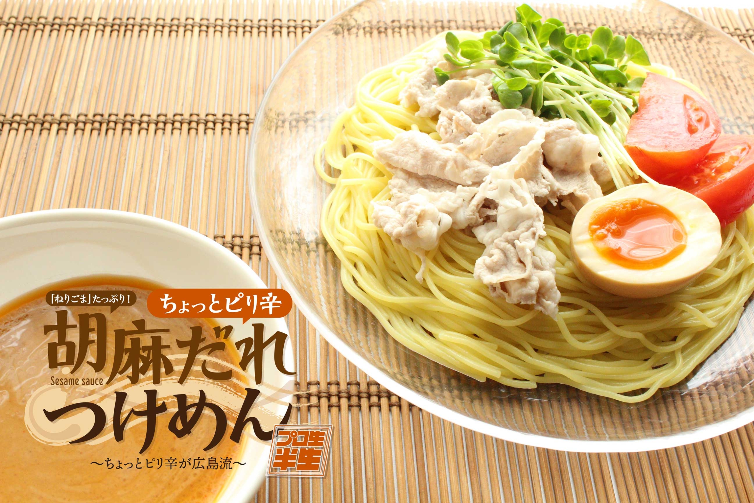濃厚なねりごまたっぷりのちょっとピリ辛の特製ごまだれ付き、簡単調理の「半生 プロ生胡麻だれつけ麺」本日より発売です! お好みの野菜やゆで卵を添えるとより一層おいしくお召し上がりいただけます。