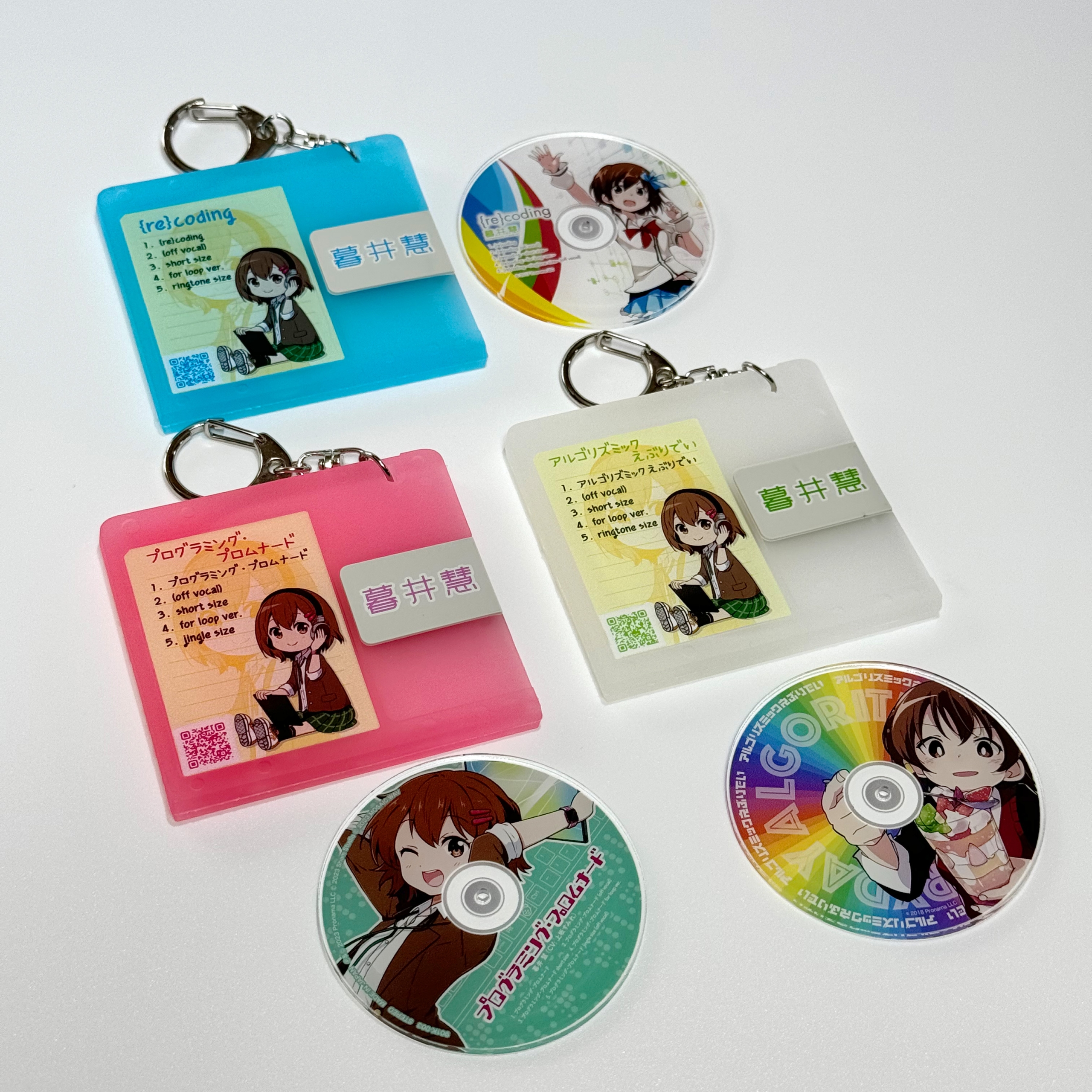 キャラソンをイメージした3種類と、より本物らしい(?)ラバー本体に印刷なし+MD盤面のアクリルディスクバージョンを発売します。