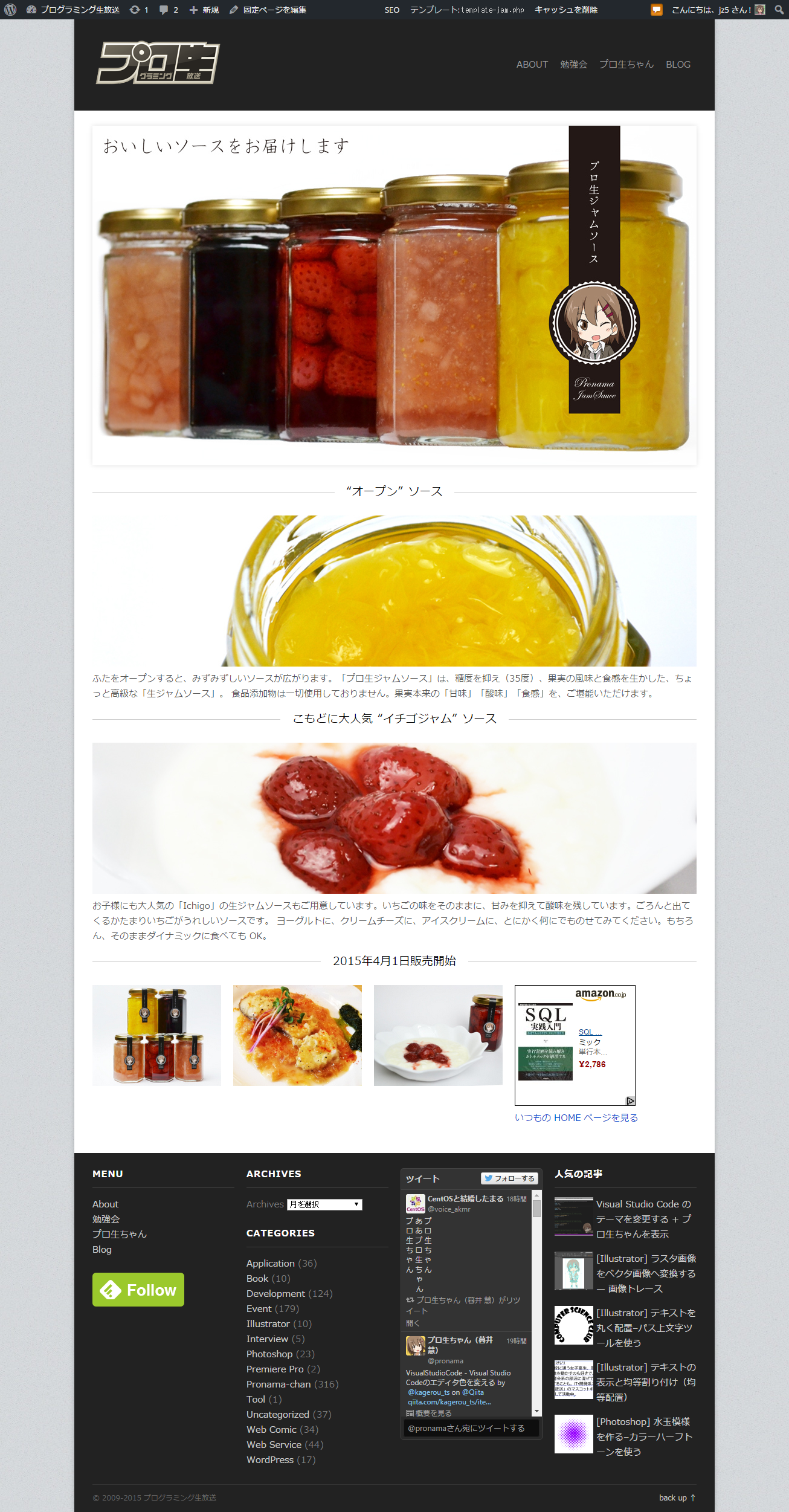 プロ生ジャムソース2015/03/312015/05/22※ サイト変更のため当時の画面はありません。当時の画面は画像でご覧いただけます。 プロ生ジャムソースはじめました | プログラミング生放送 Posted by jz5