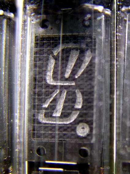 数字部分は、8セグメントで、DG12B の 9セグメントから 4専用のセグメントが無くなっています。DG12B より小さい VFD で、同一の大きさにすると少し太い書体になっています。
